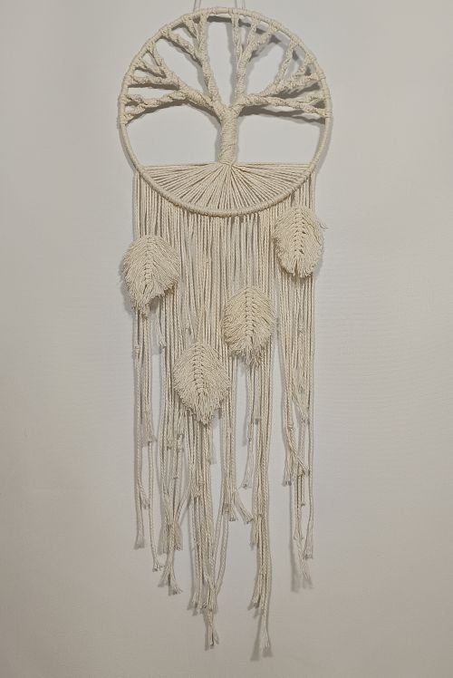 Arbre de vie composé d'un anneau en fer et de macramé en coton recyclé.