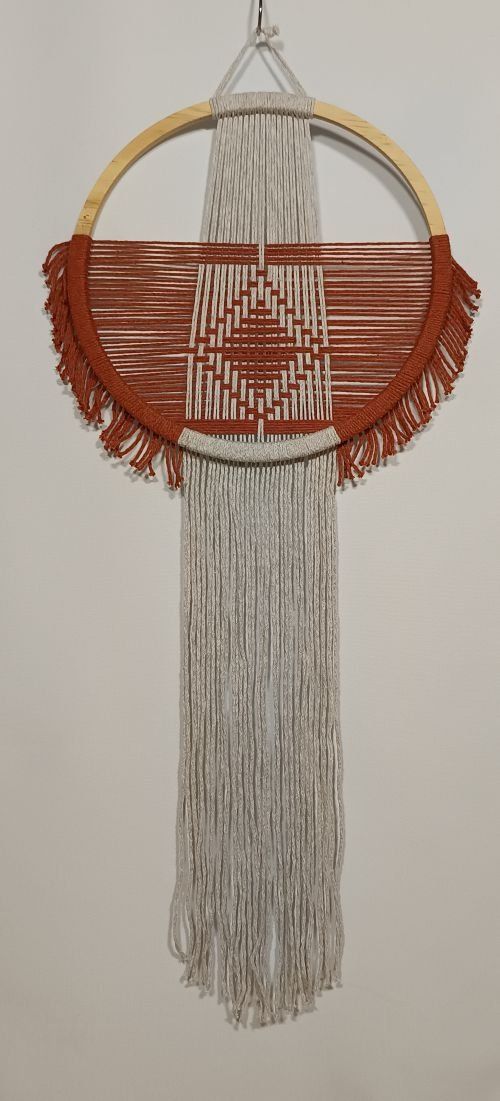 Cercle de vie composé d'un anneau en bois et de macramé en coton recyclé.